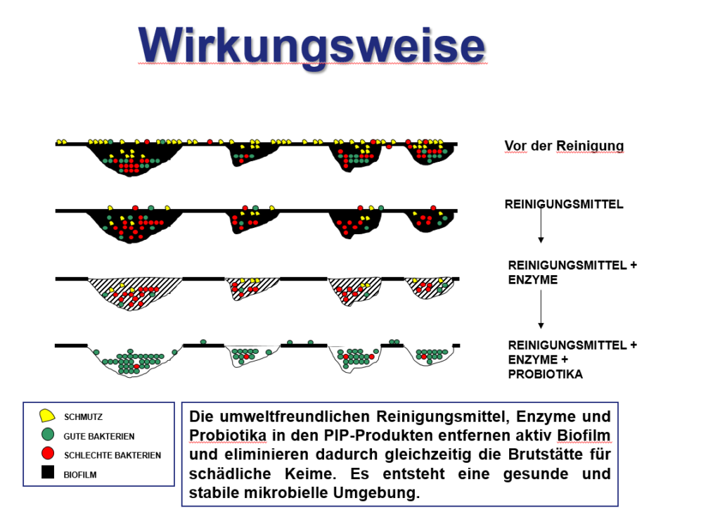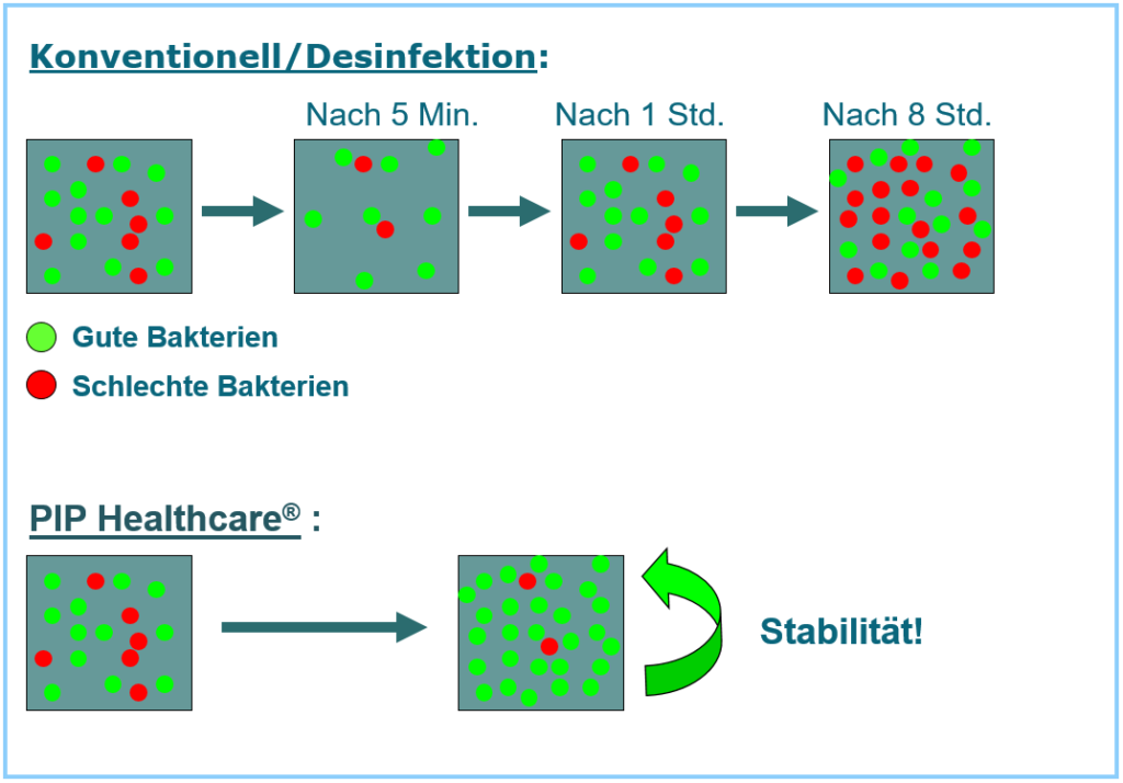 Bei einem Hygienenotfall wie Norovirus oder Covid sind die probiotischen Bakterien nicht wirksam und die Desinfektion ist notwendig.